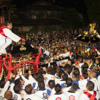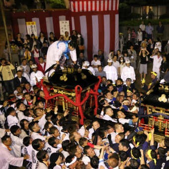 また、神輿の柄が交差するように正面から「鉢合わせ」をする「喧嘩神輿」が特徴です。地元では「せきあい」とも呼ばれます。
