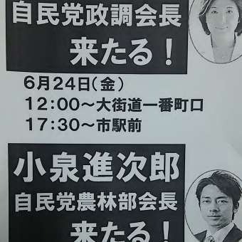 6月24日(金)12:00~大街道一番町口、17:30~市駅前