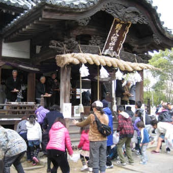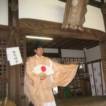 3月25日、朝日八幡神社(松山市南江戸鎮座)にて春祭りの祭典が行われ、あわせて伊予里神楽の奉納も行いました。