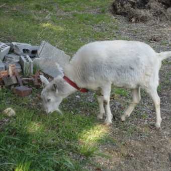 境内になぜかヤギがいました。飼っているんでしょうか・・・近くで見ると目が怖いです。