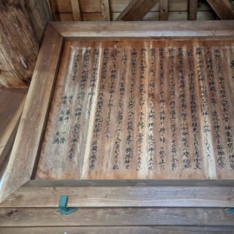 奥土居神社の拝殿には、由緒が記された社伝が掲げられていましたので、ご紹介します。