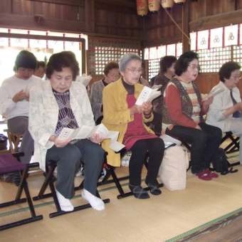 5月1日 月次祭(皐月)・奥土居神社春祭り 2014 5/03 他神社・仏閣 2014年5月3日 5月1日 毎月恒例の月次祭(つきなみさい)執り行いました。 祝詞奏上後、雅楽「壱越調 賀殿急」を奉納致しました。 お祭りの後、宮前地区敬神婦人会の皆様に境内清掃をして頂き、崇敬婦人会の監査も行われ、会務、会計共に適正に運営されていることが承認されました。 またこの日は奥土居神社にて春祭りが行われ、伊予里神楽を奉納してきました。 境内で販売されている たこ焼きは30円、ぽん菓子は20円と破格! 今年は特に子供たちが多く、賑やかにお祭りが行われました。 他神社・仏閣 三津浜婦人会・三津浜老人クラブ 境内清掃 日吉神社 春祭り