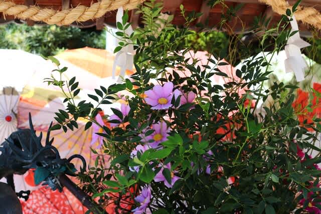 枝の隙間からひっそりと顔を出すコスモスがかわいらしいです。