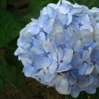 境内の白いアジサイが変化し始めました!どんどん青みがかっています。一般的に酸性の土壌だと青になるそうです。うちの境内の土壌は酸性なのでしょうか?