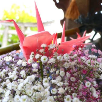 フラワーショップ小谷さん(松山市祓川2丁目13-14)より奉納いただいている花手水。