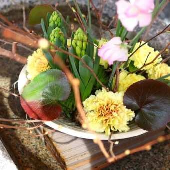 天満宮の花手水が入れ替わりました🌸 2024 2/08 境内の植物 2024年2月8日 当社では2か所花手水をしており、天満宮の方はフラワーショップ小谷さんに手入れしていただいています。今回は可憐な春らしいお花で仕上げてくれました。いつもありがとうございます。 境内の植物 愛媛県社会福祉事業団に寄附致しました。 伊勢の神宮にて大学生と清掃奉仕をしました