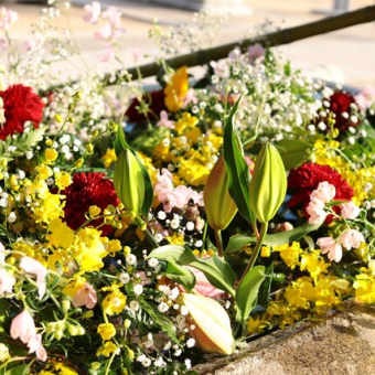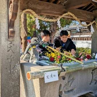 新田高校の華道部生徒が花手水が奉納してくれました。