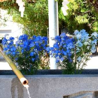 その上にテマリソウとブルーベラドンナが活けてあります。