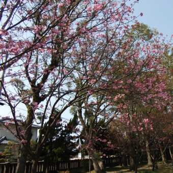 めっきり春めいてきたこの頃。彼岸桜が開花し、只今一部咲きといったところです。26日頃が見頃でしょうか。ソメイヨシノの見頃はその後からです。