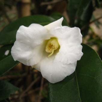 胡蝶(こちょう)という種類で小さな侘助の花を咲かせるのですが、そこがまた控えめなで日本人らし美意識を感じさせてくれます。