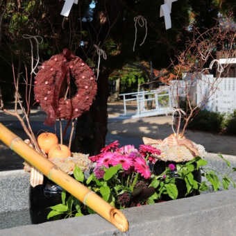 偶然「結び」と題された花手水が奉納されて驚きました。