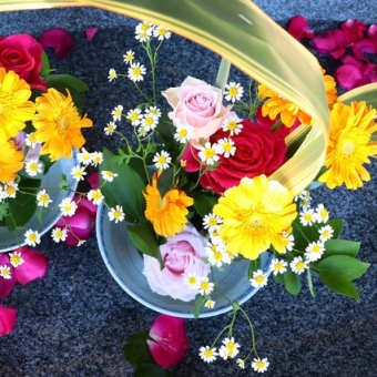 躍動する葉とバラとガーベラ 2021 4/24 境内の植物 2021年4月24日 フラワーショップ小谷さんより奉納いただいている花手水。 このところ土曜日に替えていただくことが多くなっています。今回は趣向を変えて葉物が目立つようになっています。赤と白のバラに春らしいビタミンカラーのガーベラが元気を分けてくれます。 境内の植物 🌸桜の前で記念撮影する猫🌸 5月限定御朱印は花菖蒲