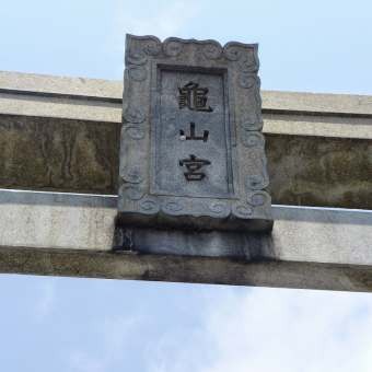 石で作成されたものでは日本一大きいのではないかと言われる亀山八幡宮の社名額。たたみ2畳ほどあるそう。