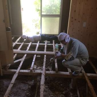 床下の泥をとる作業は身動きも自由にできず、風も通らず、といった状況でした。