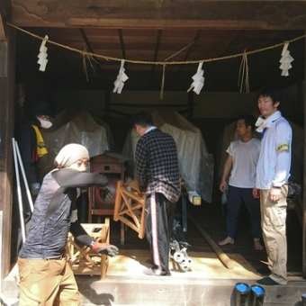 社務所は床上30センチほど浸水しており、床板の撤去や床下にたまった泥を撤去しました。