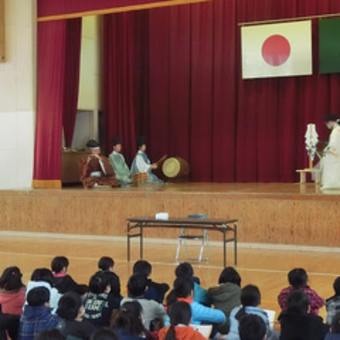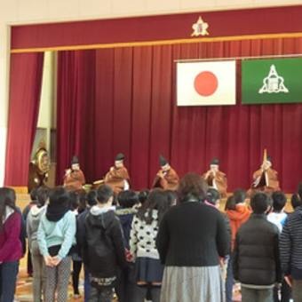 愛媛県神道青年会主催の慰問神楽(いもんかぐら)が三津浜小学校にて行われました。