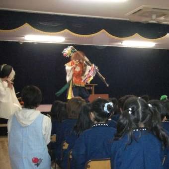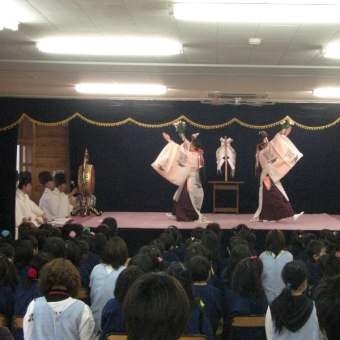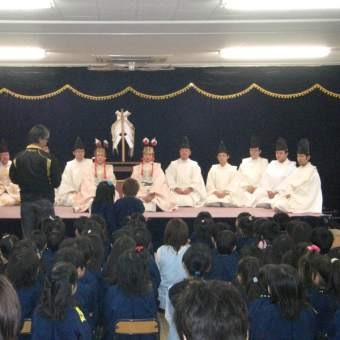 新居浜市八幡にあるミドリ保育園にて、園児の前で雅楽(ががく)の演奏、舞さらに伊予神楽を行いました。