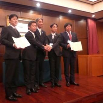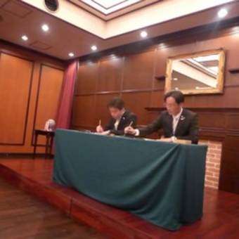 全国初となる姉妹地区の締結を行い、目出度い雰囲気の中、祝賀会が行われました。