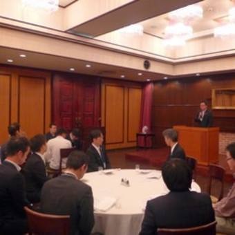 更に会場を移し国際ホテル松山にて、十亀博行前四国地区会長より「東日本大震災から見る災害支援ネットワークの必要性」の講義をして頂きました。台風被害を例題に災害時の連携対応の順序について細かく説明して頂きました。