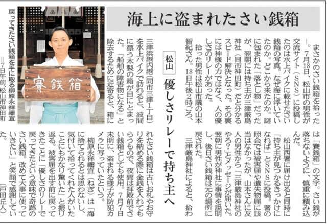 海上で拾ってSNSに投稿してくれた方、当社の賽銭箱だと気づき知らせてくれた方…