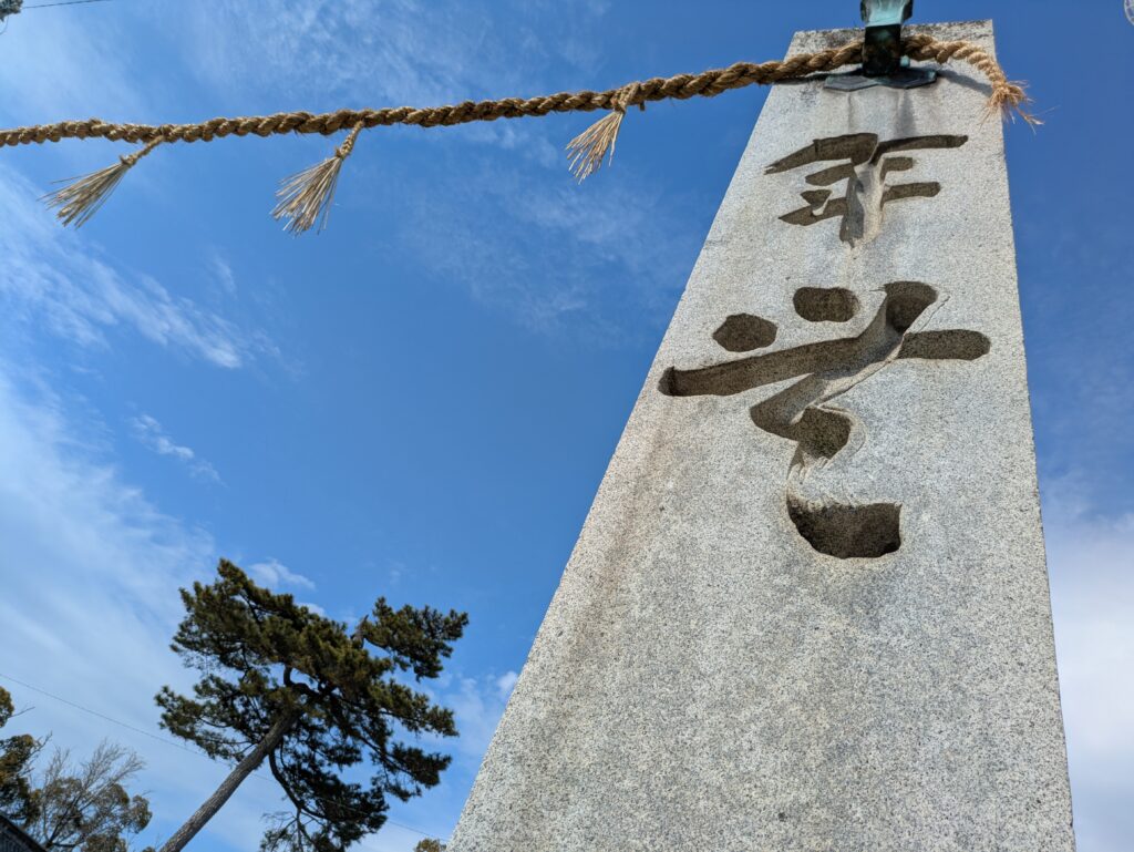 この石は「注連石(しめいし)」といい、注連縄(しめなわ)を張り、神聖な場所であることを示すための石です。