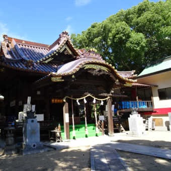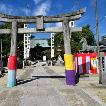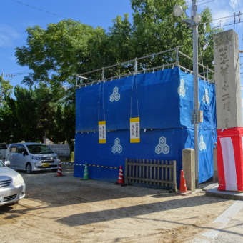 総代さんたちに協力して頂き、境内を秋祭り用に紅白幕や看板をつけました。