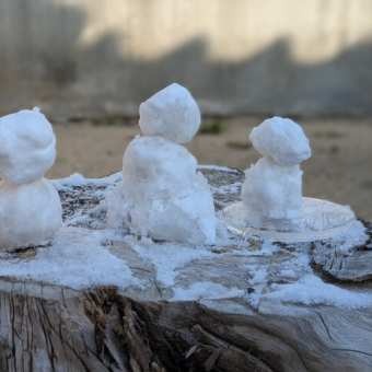 先日よりも今回の方が積もっており、小さいながら雪だるまを作ることができました。