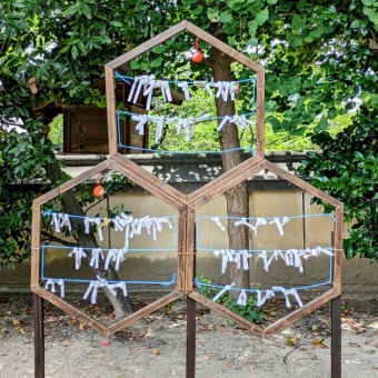 三亀甲のおみくじかけを設置しました。 2024 7/09 日々のできごと 2024年7月9日 三津嚴島神社の社紋である三盛亀甲花菱を模した、当社オリジナルのおみくじかけを設置しました。 一年安鯛みくじや、い〜よかんみくじをかけられるようにしています。 8月末まで夏詣期間になりますので、夏のお詣りもお楽しみください。 日々のできごと 7月の戌の日は9日(火)・21日(日) 毎年7月10日は三津恵美須神社の「夏えびす」
