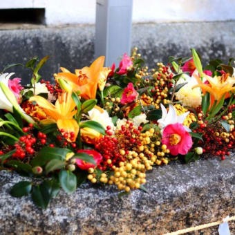 現在、神門前にある手水舎にてフラワーショップ小谷さんから花手水を奉納していただいています。
