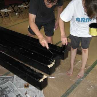 激しい関合(せきあい)の末、かき棒(長柄)が大分削れてきたので、漆を塗り直しました。