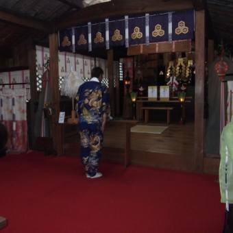 まず神社にて神輿渡御安全(しんよとぎょあんぜん)を祈念し
