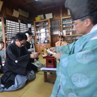 三津浜商店街入口横(松山市住吉1丁目)に鎮座する住吉神社にて結婚式が行われました。