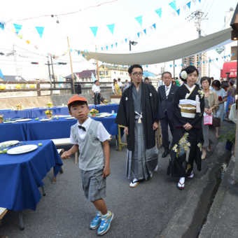 結婚式後は地域の皆様総出でお祝い。
