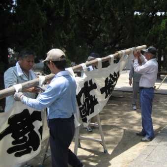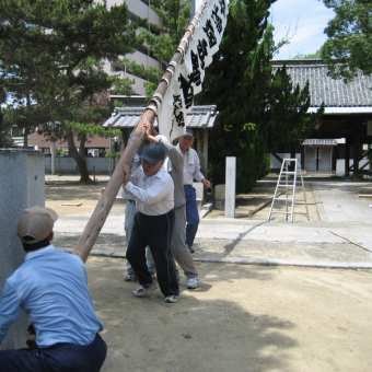 神社では大きなお祭りの際に幟(のぼり)を立てます。