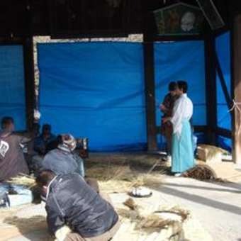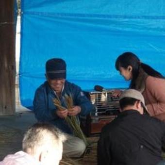 朝から注連縄、しめ飾りを作製していた総代さんにも突撃取材
