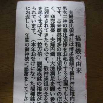 これは櫛田神社の境内ないにある夫婦恵比須神社のお祭りの際に頒布するものなんですが、なんだか縁を感じますね。懐かしい・・福岡にも久しく行ってないな。