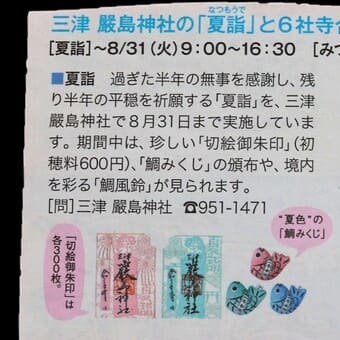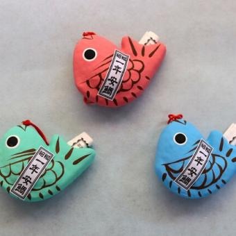 普段は赤・黒・金色の鯛みくじも夏色になっています。