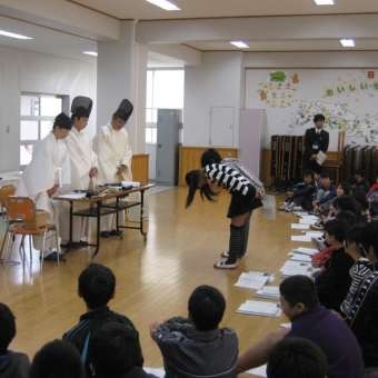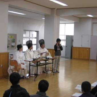 最後には生徒から感想とお礼の言葉があり、内心感動してしまいました。雅楽をしているとやはり興味のある方が集まって練習しますので、なかなか客観的な意見を聞くことが出来ないのですが、今回は生徒達のストレートな意見を聞くことが出来、私たちにとっても収穫の多い授業となりました。