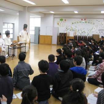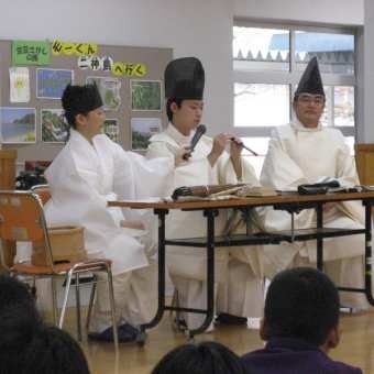 宮前小学校6年生の音楽の授業時間をいただき、雅楽の授業をさせてもらいました。