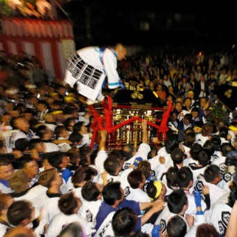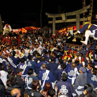 今年も暁の宮出しとともに勇壮豪快な喧嘩神輿(けんかみこし)が行われました。