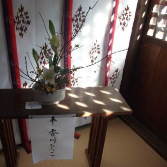 月次祭(霜月) 2013 11/02 日々のできごと 2013年11月2日 11月1日 今月も午前9時半より敬神婦人会の皆様中心に参列頂き、月次祭滞りなく斎行致しました。 10月は当厳島神社の秋祭りがあり、当社宮司が伊勢の神宮にて神嘗祭(かんなめさい)に奉仕し、 私禰宜が神宮式年遷宮奉祝行事にて伊予里神楽奉納と慌ただしくも充実した日々を過ごすことが出来ました。 今月の香川ひろこさんの献花の花材はミズキ、テッポウユリ、小菊になります。 これから日に日に寒さが増し、風邪も流行ってくると思いますので、体調管理お気を付け下さい。 日々のできごと 愛媛雅楽会練習・今治(10月) 林檎犬さんへのコメント回答2