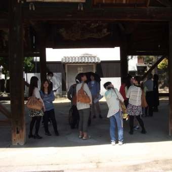 松山大学の学生がボランティアで高齢者の介護を行うということで、その前に三津の町を知るべく当厳島神社にお参りに来ました。