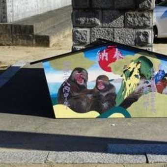 来年の干支である「申」をモチーフとした絵馬を奉納して、全員で拝礼