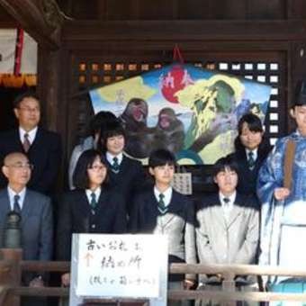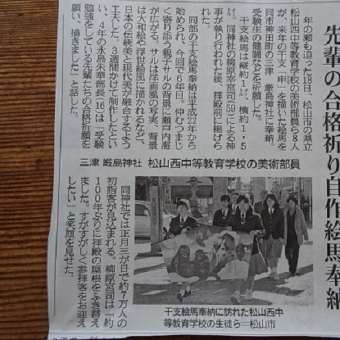 毎年恒例となっている松山西中等教育学校美術部による絵馬奉納式を執り行いました。