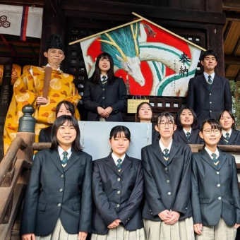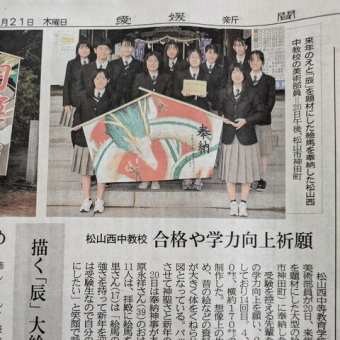 松山西中等教育学校美術部より特大絵馬が奉納されました🐉