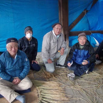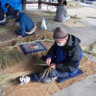 総代さんに正月用のお飾り、注連縄(しめなわ)を作っていただきました。