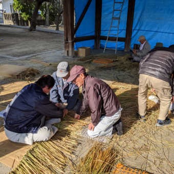 正月飾り 2019 12/28 日々のできごと 2019年12月28日 総代さんの協力により 今年も立派な正月飾りが完成しました。 藁を使った正月飾り 農業に携わる方も減り 昔は当たり前のように作られていた縄等も 今となっては特殊な技術になってきています。 総代さんに協力していただき お飾りや注連縄の作り方も 伝承していただいています。 誠にありがとうございます。 日々のできごと 清掃奉仕 熟田津三社詣り守護玉 入魂式