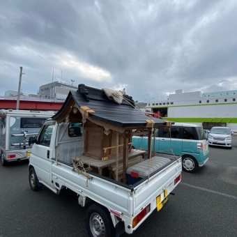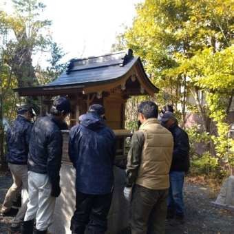 福島県いわき市の見渡神社へ社殿を福島県神道青年会の方たちと一緒に据付作業を行いました。