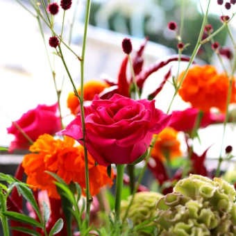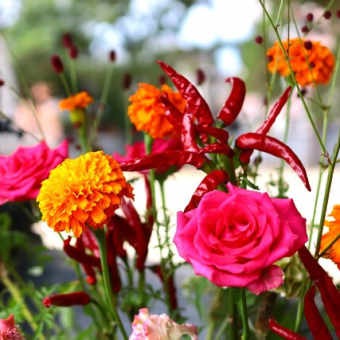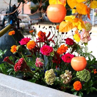 🍂秋の彩り花手水🍂 2021 10/12 日々のできごと 2021年10月12日 まちおこし促進事業として、 フラワーショップ小谷さんに奉納していただいている花手水。 お花業界で最近流行しているというドライフラワーもいれてくれました。 唐辛子、ワレモコウが秋らしい雰囲気を盛り立ててくれます。 花材は マリーゴールド、ケイトウ、バラ、トウガラシ ドラセナ、アセビ、キイチゴ、ワレモコウ 鮮やかなマリーゴールドとバラがとても綺麗です。 日々のできごと 📍いつくしマルシェ出店募集📍 ☆神輿の前で七五三の御祈祷☆