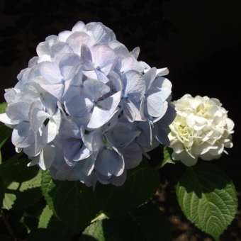 白のアジサイは日に日に青みがかって見頃を迎えています。